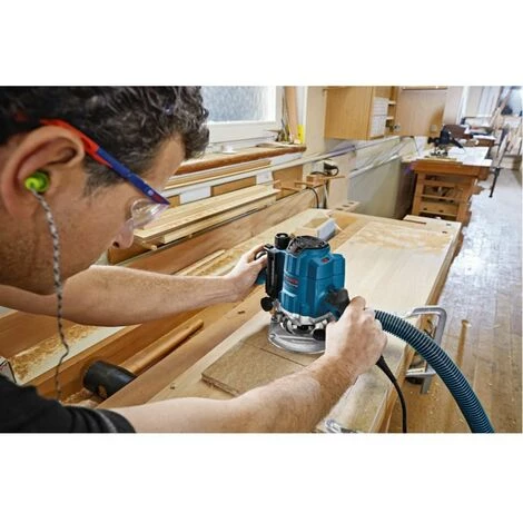 Oberfräse GOF 1250 CE. Die komfortable Präzisionsoberfräse. Hervorragende Werkzeugführung durch ergonomisches Griffdesign mit unterschiedlichen Griffpositionen. Patentierte. hochpräzise Frästiefen-Feineinstellung in 1/10-mm-Schritten. Einzigartige patentierte Spindelarretierung für einen einfachen und schnellen Fräserwechsel. Durchzugsstarker 1.250-Watt Motor mit Constant-Electronic und Softstart für materialgerechtes Arbeiten. Transparente Fußplatte mit innovativer Geometrie für sehr gute Sicht aufs Werkstück. Integrierte Staubabsaugung – ohne zusätzliche Adapter. L-BOXX 238 (1 600 A00 1RS). Maulschlüssel 19 mm (ET-Nr. 1 907 950 511). Parallelanschlag mit Feineinstellung (2 607 001 387). Kopierhülsenadapter (ET-Nr. 2 610 991 370). Spannzange mit Überwurfmutter 8 mm (2 608 570 102).