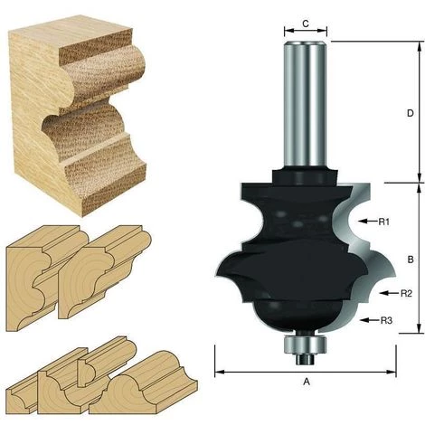 ENT Multiformfräser HW (HM), Schaft (C) 12 mm, Durchmesser (A) 49,7 mm, B 44 mm, R1=6 mm, R2=8 mm, R3=8 mm, D 40 mm, mit Kugellager – Art.-Nr. 15540