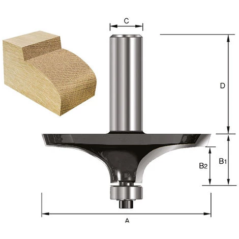 ENT Formfräser HW (HM), Schaft (C) 8 mm, Durchmesser (A) 30,2 mm, B1 10,5 mm, B2 6,5 mm, D 32 mm, Form „A“ mit Kugellager – Art.-Nr. 15660