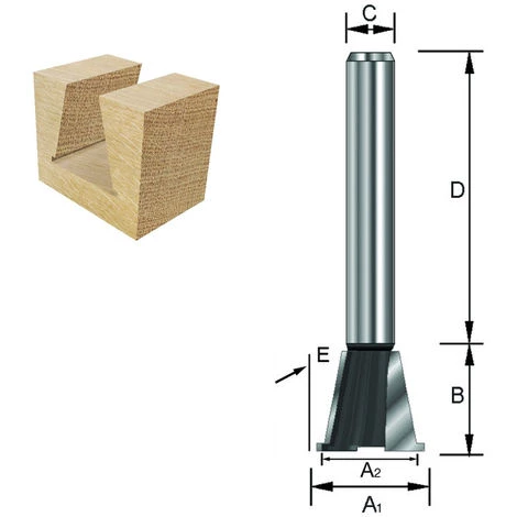 ENT Zinkenfräser HW (HM), Schaft (C) 12 mm, B 13,5 mm, A1 14,3 mm, A2 12,7 mm, E 14°, D 40 mm, mit Vorschneider – Art.-Nr. 16150