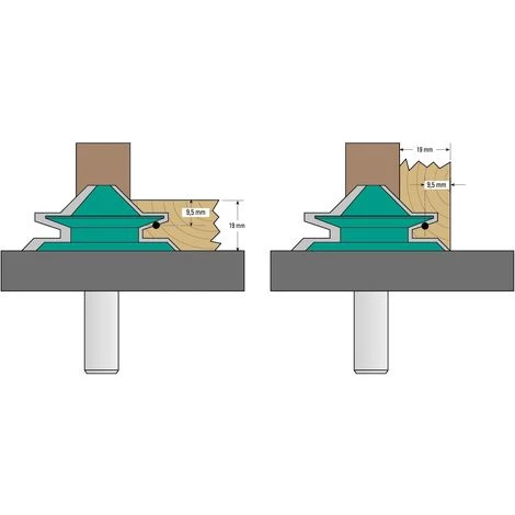 Zum stabilen Verleimen von zwei Arbeitsstücken im 90-Grad-Winkel. Ebenso sind gerade Verleimungen möglich. Für Holzstärken von 8 bis 12 mm