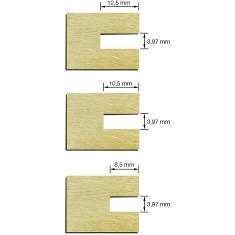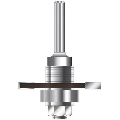 Set bestehend aus Aufnahmedorn mit montiertem Nutfräser. Dazu drei Kugellager in verschiedenen Größen, die Ihnen die Verwendung von drei Flachdübelgrößen ermöglichen.