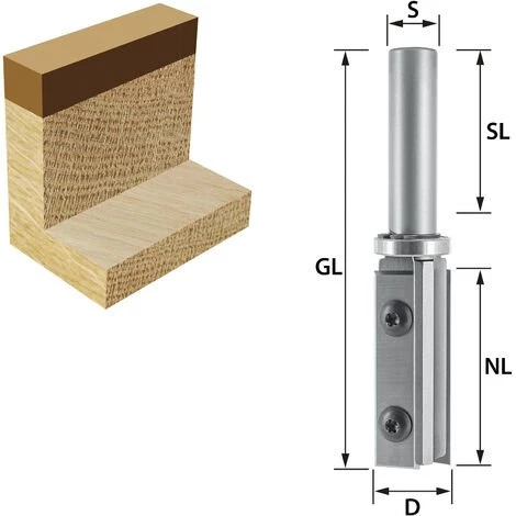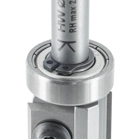 Grundschneidender und flankenschneidender Bündigfräser mit zwei Hartmetall-Wendeplatten und austauschbarem Kugellager am Schaft. Das eingesetzte Hartmetall ermöglicht zusätzlich eine hohe Standzeit. Die Wendeplatte ist mehrseitig verwendbar, dadurch ist dieser Wendeplatten-Bündigfräser bei häufiger Nutzung wirtschaftlicher als ein festbestückter Fräser. Die Wendemesser können mit einem TORX-Schlüssel getauscht werden. Dieser Fräser ist für Weichholz, Hartholz und beschichtete Platten geeignet. Dieser Fräser passt in Handoberfräsen und Tischoberfräsen mit einer 12 mm Spannzange.