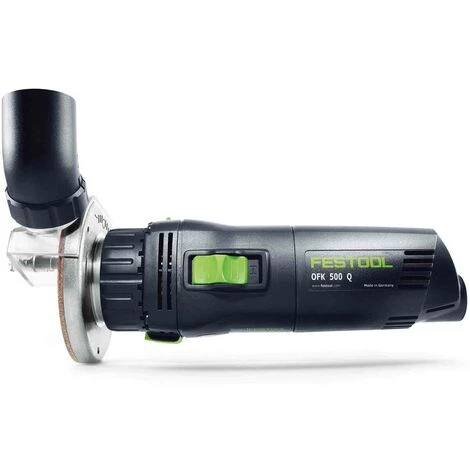 Fasen, Abrunden, Profilieren und Nuten – gleichmäßig, sauber und splitterfrei mit der Kantenfräse OFK 500. Sie wiegt nur 1,4 kg und ist mit idealem Schwerpunkt besonders handlich auch für senkrechte und waagrechte Einsätze. Besonderheit der Maschine ist das Fräser-System: Alle Werkzeuge für die Kantenfräse sind im Außendurchmesser gleich. Dadurch wurde die Tischöffnung der Fräse auf ein Minimum reduziert, was ein Abkippen beim Fräsen im problematischen Eckbereich vermeidet.