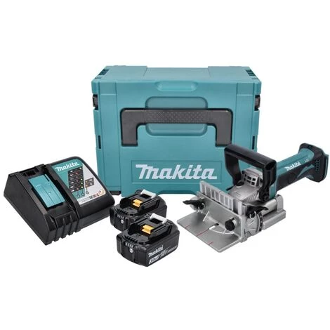 Die handliche und kurze Makita DPJ 180 Akku Nutfräse ist bestens geeignet für alle handelsüblichen Holz-Fachdübel als auch zum Sägen von Schattenfugen an Wand und Decke. Der DPJ 180 bietet 6 verschieden Einstellung die mit einer Tiefen-Feinstellschraube vorgenommen werden können sowie eine genaue und leichtgängige Zahnstangen-Tiefeneinstellung des Winkelanschlags. Des Weiteren lässt sich die Winkelanschlagverriegelung bei der Akku Nutfräse mit nur einem Spannhebel betätigen und der Schwenkanschlag ist stufenlos von 0° bis 90° verstellbar mit Rastungen bei 0°, 45° und 90°.